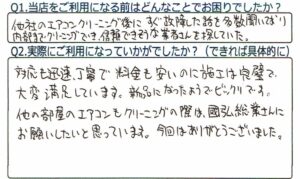 A1. 他社のエアコンクリーニング後にすぐ故障した話を多数聞いており、内部までクリーニングでき、信頼できそうな業者さんを探していた。 A2. 対応も迅速、丁寧で料金も安いのに施工は完璧で大変満足しています。新品になったよ […]
